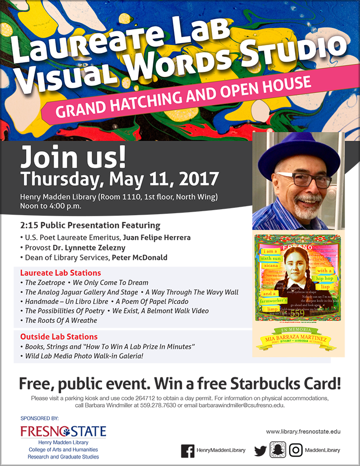 ~ Reprinted from FresnoStateNews.com Two events honoring Juan Felipe Herrera, U.S. Poet Laureate Consultant in Poetry Emeritus, are scheduled for this week at Fresno State. At 7 p.m. Tuesday, May 9, in the Concert Hall, the Fresno State Chamber Singers will reprise a command performance from their recent trip to Washington, D.C., where they performed for […]