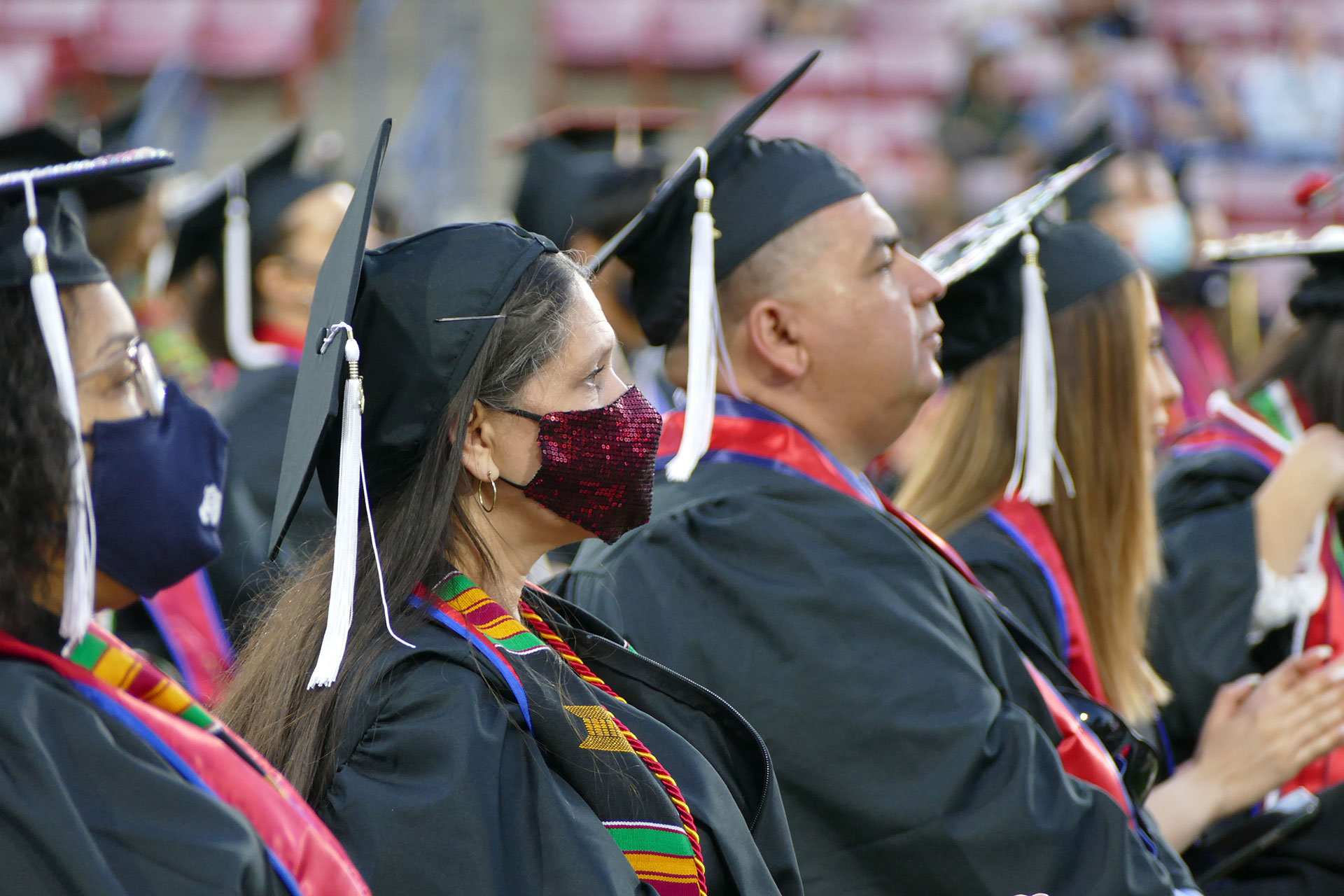 The breeze rejuvenated as it passed through the masked students in the warm May evening while graduates congregated outside Bulldog Stadium ahead of commencement. For many, this was among the first gatherings in the 14 months since the quarantine lockdown. One squinted to recognize masked friends and colleagues in the bright sun after months of looking at each other in small square boxes on the computer screen.